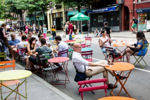 People drinking at outdoor bar, Greenwich Village, Manhattan, New York City, New York, United States